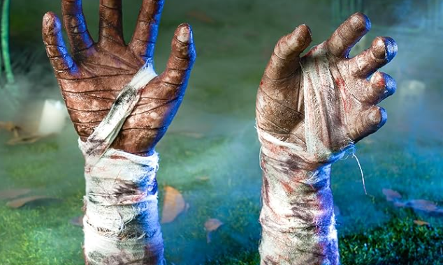Zombie Hands Stakes: 30 inches white zombie hands lawn stakes would be your perfect addition for haunted ambiance.